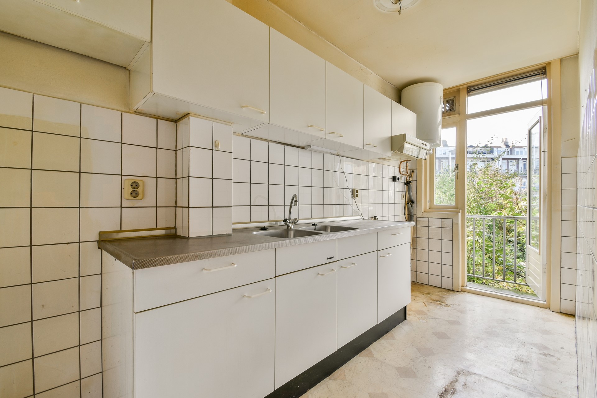 For Sale — This bright, pleasantly arranged and ready to be modernised 3-room apartment of approx. 51 m² is located on the first floor of a classic 1930s building in the popular Bos en Lommer district. The property has a practical layout with a light-filled living room, two bedrooms, a southwest-facing balcony, and a private storage room in the attic — something rarely found in this neighbourhood.