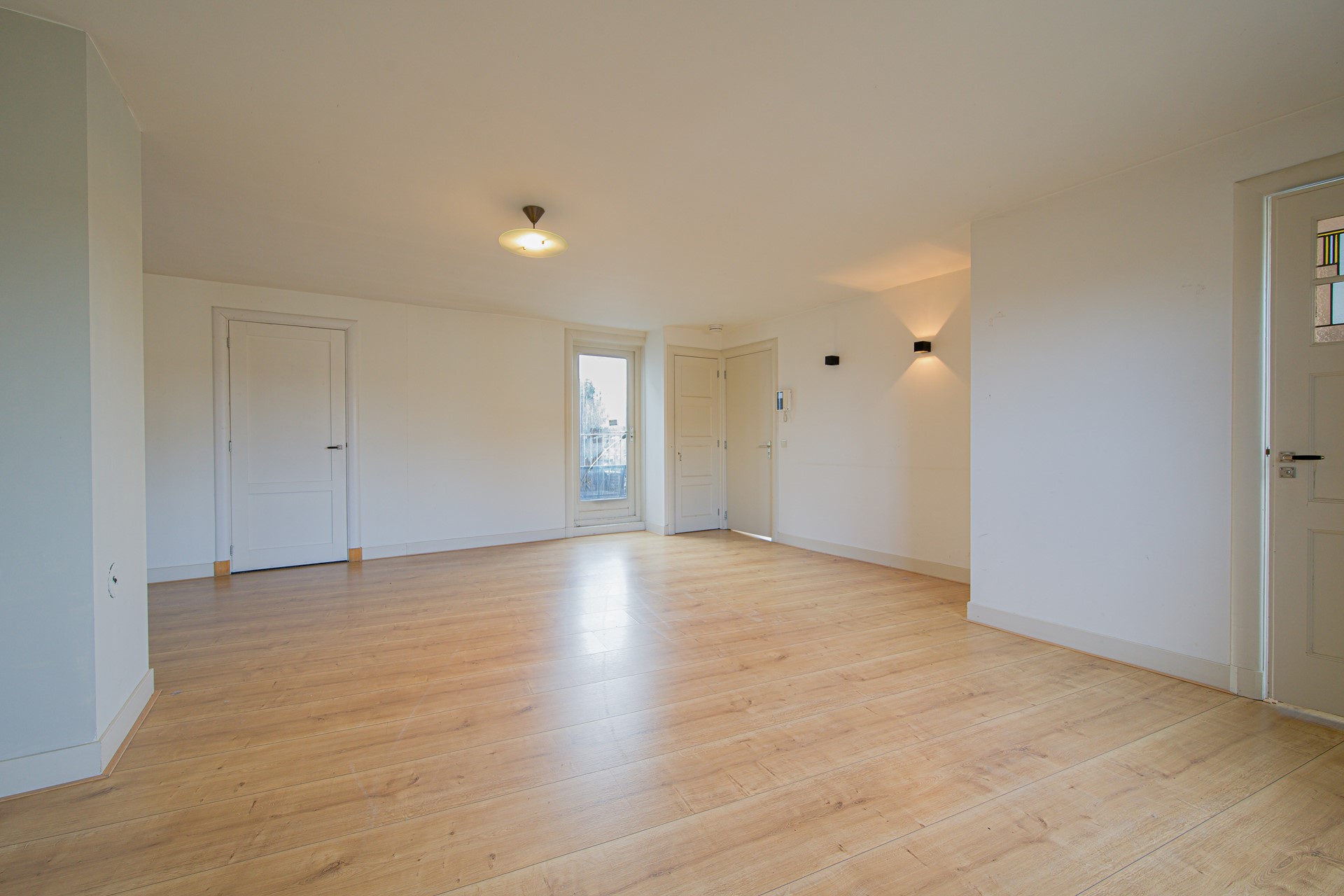 Ruime hal met toegang tot diverse vertrekken. Vanuit de hal leidt een vaste trap naar de tweede woonlaag.