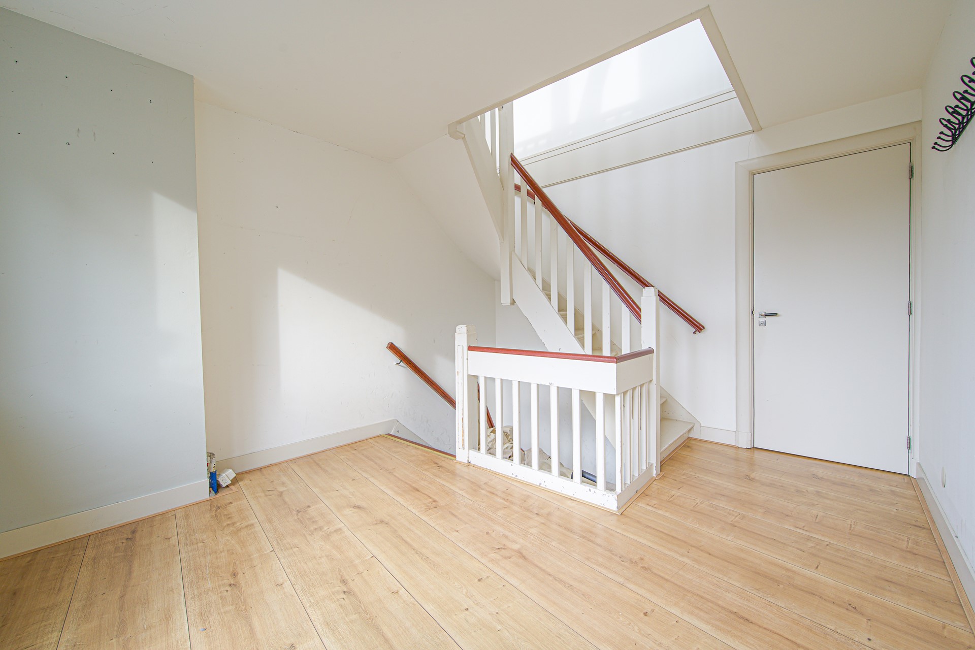 Via de trap in de hal of woonkamer bereikt u de bovenverdieping.
