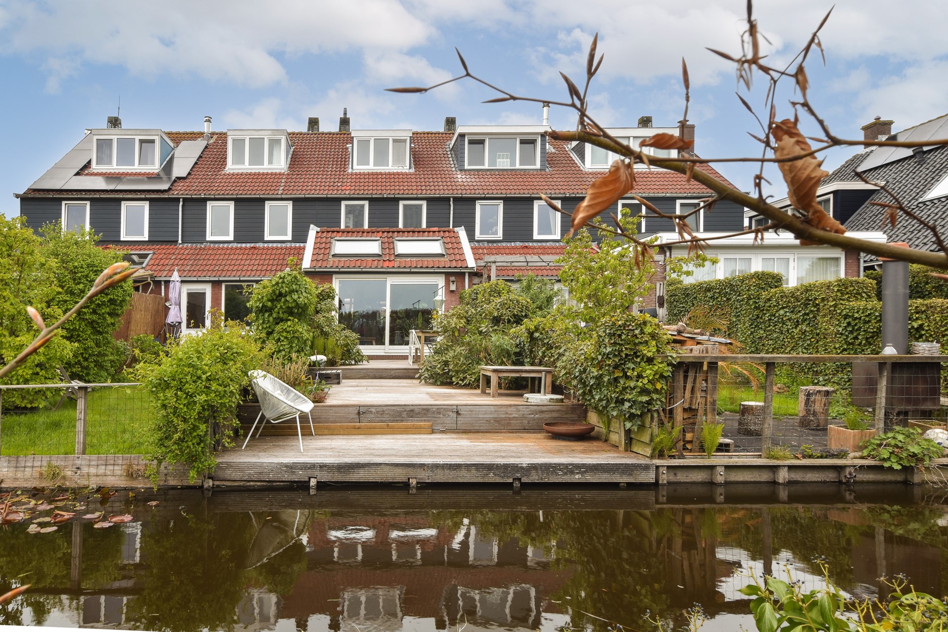 De zonnige achtertuin is een groene oase van rust, ideaal voor het echte buitenleven. De tuin is rijk aan beplanting en fraai aangelegd met een mooie houten vlonder, diverse zithoekjes en comfortabel tuinmeubilair – perfect voor een ontspannen ochtend of gezellige avond in de open lucht. De vlonder grenst direct aan het water, waar u vanaf hier zo op het bij de woning aanwezige sub-board kunt stappen voor een kalme en schilderachtige tocht.