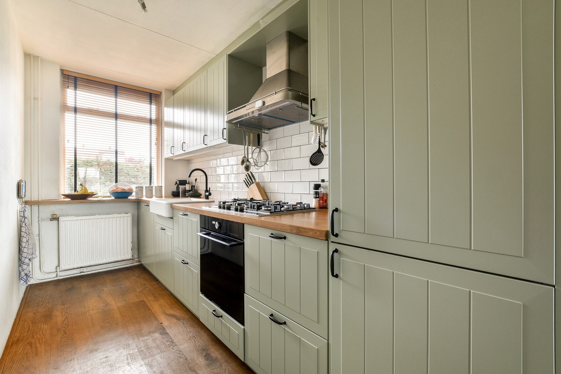 De royale living is smaakvol ingericht met een comfortabele zithoek en een grote eettafel. Dankzij een dubbele raampartij in het plafond én een brede schuifpui naar de tuin stroomt het natuurlijke licht rijkelijk binnen. Deze elementen creëren niet alleen een heerlijk lichte sfeer, maar zorgen ook voor een mooie verbinding tussen binnen en buiten. De keuken is van alle gemakken voorzien en kijkt uit op de rustige straat en de karakteristieke buurt, wat zorgt voor een sfeervol uitzicht aan de voorkant van het huis.