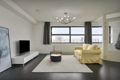 The living room is very spacious and with the many windows and good height, this provides a lot of light and a beautiful view. There is also a separate room (loggia) in the living room that can be used as a play/study room or home office.