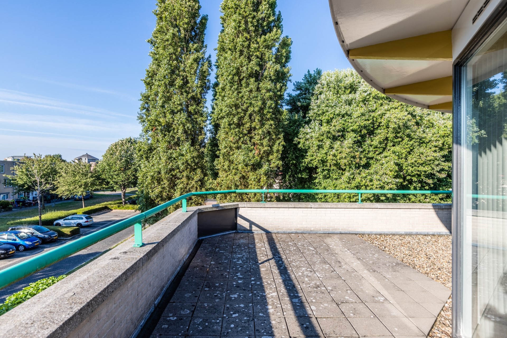 Via openslaande deuren is er toegang tot het dakterras. Vanaf het dakterras heb je vrij uitzicht en door de ligging op het zuidwesten kun je hier volop genieten van de zon.