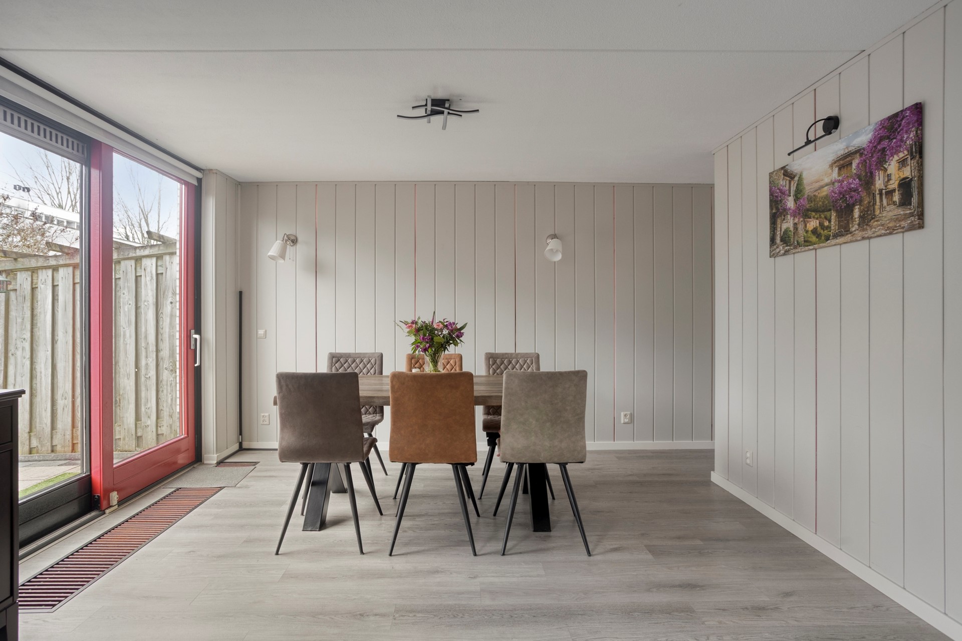 Aan de voorzijde van de woning bevindt zich een eigen oprit met parkeergelegenheid voor één auto. Via de entree kom je in de hal met toegang tot de verschillende ruimtes. Aan de voorzijde bevindt zich een extra (slaap)kamer, ideaal als hobbykamer of praktijkruimte. De woonkamer is gelegen aan de achterzijde en biedt ruimte voor een comfortabele zithoek en een eethoek. Via de schuifpui is er directe toegang tot de diepe achtertuin, waardoor binnen en buiten mooi met elkaar verbonden zijn.