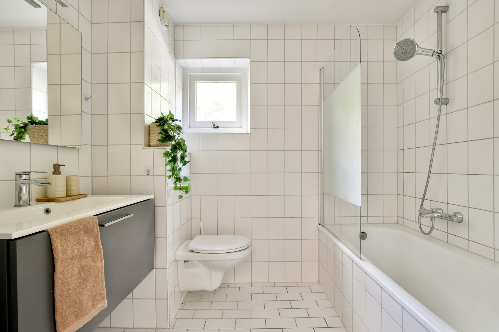 • 1e badkamer voorzien van bad met douche, wastafelmeubel, handdoekdroogrek en tweede toilet
