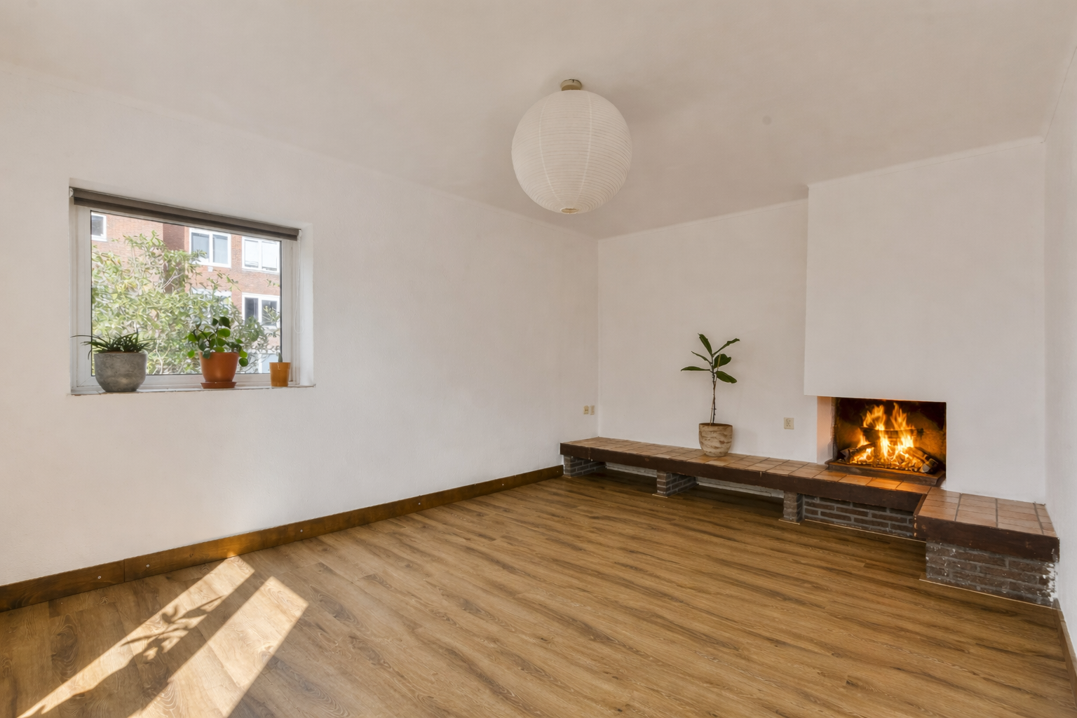 • Lichte woonkamer met open haard en karakteristieke boog naar de keuken