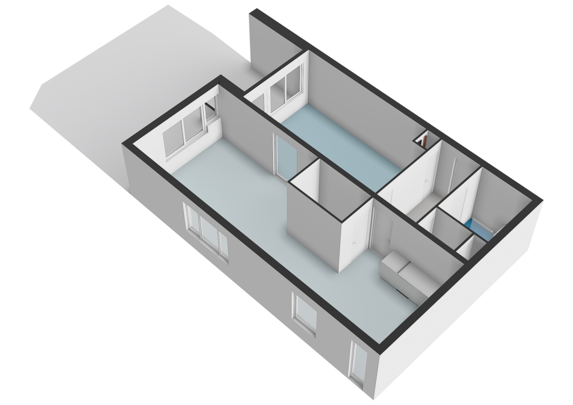 De badkamer is recent gerenoveerd en modern afgewerkt. De ruimte is voorzien van een douche, toilet en wastafel en biedt een frisse en eigentijdse uitstraling.