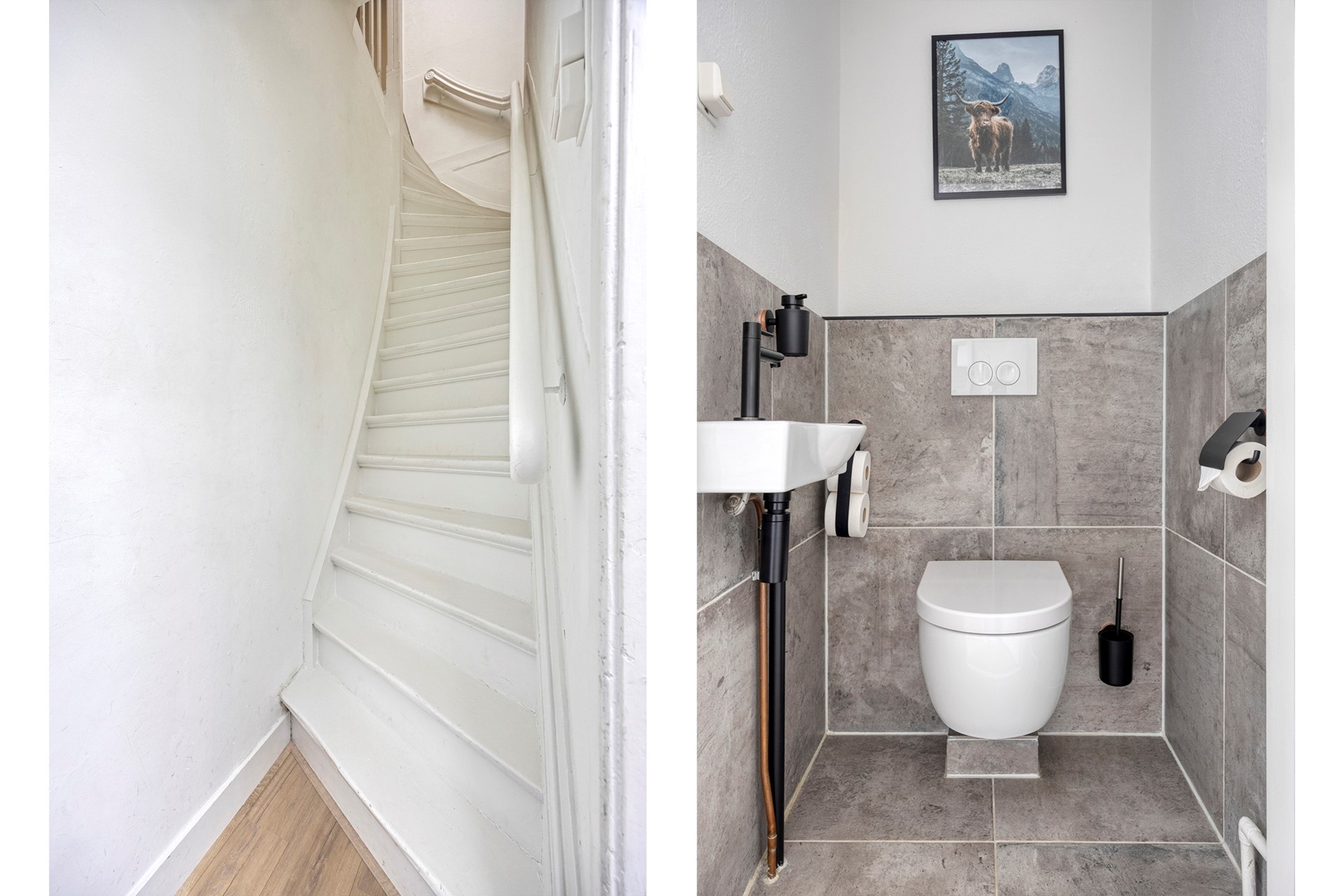 De tweede verdieping biedt een royale derde slaapkamer met een sfeervolle kapconstructie en houten balken. Daarnaast bevindt zich aan de achterzijde de rustgevende badkamer met houten accenten, compleet uitgevoerd met een ligbad, inloopdouche, wastafel met steigerhouten wastafelmeubel en wasmachineaansluiting. Op de overloop is er ruimte voor bijvoorbeeld een droger en een extra vriezer of koelkast. Vanuit de hal is tevens een L-vormige bergruimte te bereiken, waar de cv-installatie (Intergas HR eco 2015) is te vinden.
