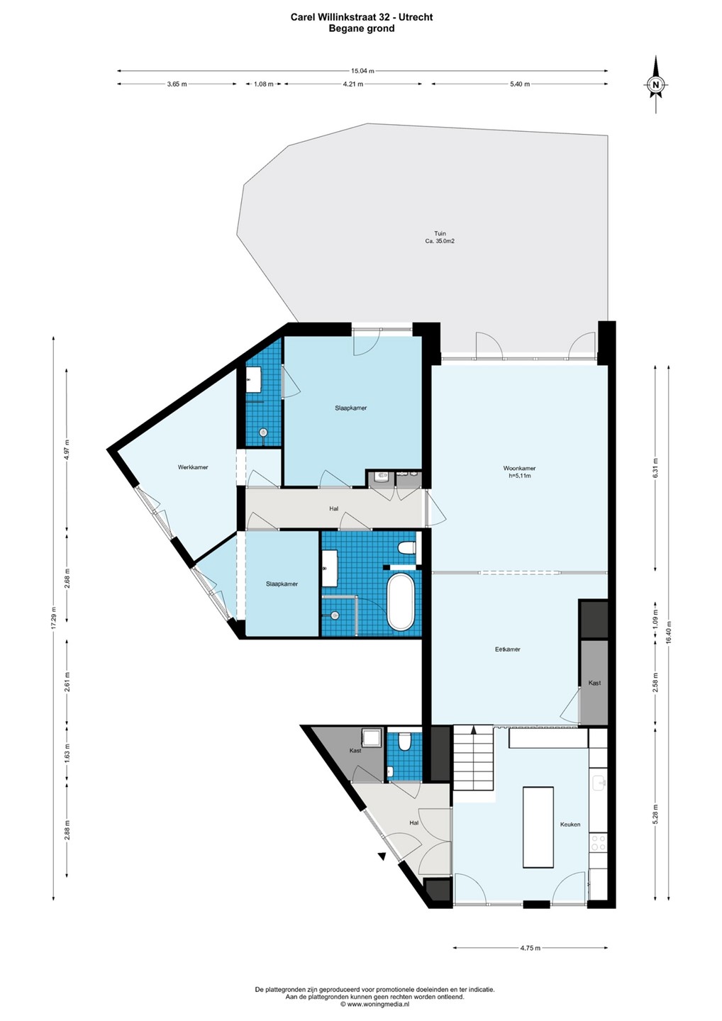 Wij hebben deze informatie met de grootste zorg samengesteld. Wij aanvaarden echter geen aansprakelijkheid voor eventuele onvolledigheden, onjuistheden of andere fouten, noch voor de gevolgen daarvan. De woning is opgemeten volgens de branchebrede meetvoorschriften, gebaseerd op de NEN-2580-norm.